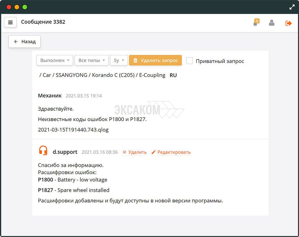 Каждое обновление производится с учетом конкретных проблем диагностики, с которыми могли столкнуться пользователи старых версий программы. Интерфейс оснащен автоматизированной системой обратной связи с технической поддержкой, что дает возможность сообщить разработчикам о проблемах с диагностикой какой-либо системы сразу после её появления. При этом система передает разработчику данные реальной ошибки с точной идентификацией автомобиля, что дает возможность безошибочно устранить обнаруженную ошибку или добавить новую необходимую функциональность.