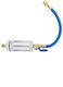 - Зарядная колба (2,2 кг), входящая в комплект, позволяет отслеживать количество фреона, поступающего в систему без использования электронных весов, а наличие подогрева позволяет повысить давление хладагента в колбе и облегчить его перетекание при заправке системы.