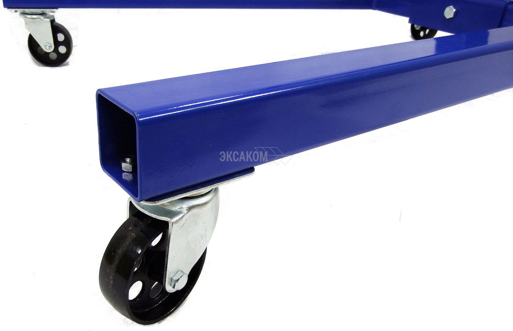 Кантователь AE&T T63005T имеет усиленную конструкцию, а также оснащен мощной рамой с механическим приводом с поворотом на 360°. Это позволяет использовать этот стенд для работы с узлами и механизмами большой массы (до 900 кг). Для транспортировки в конструкции устройства имеется четыре колеса.