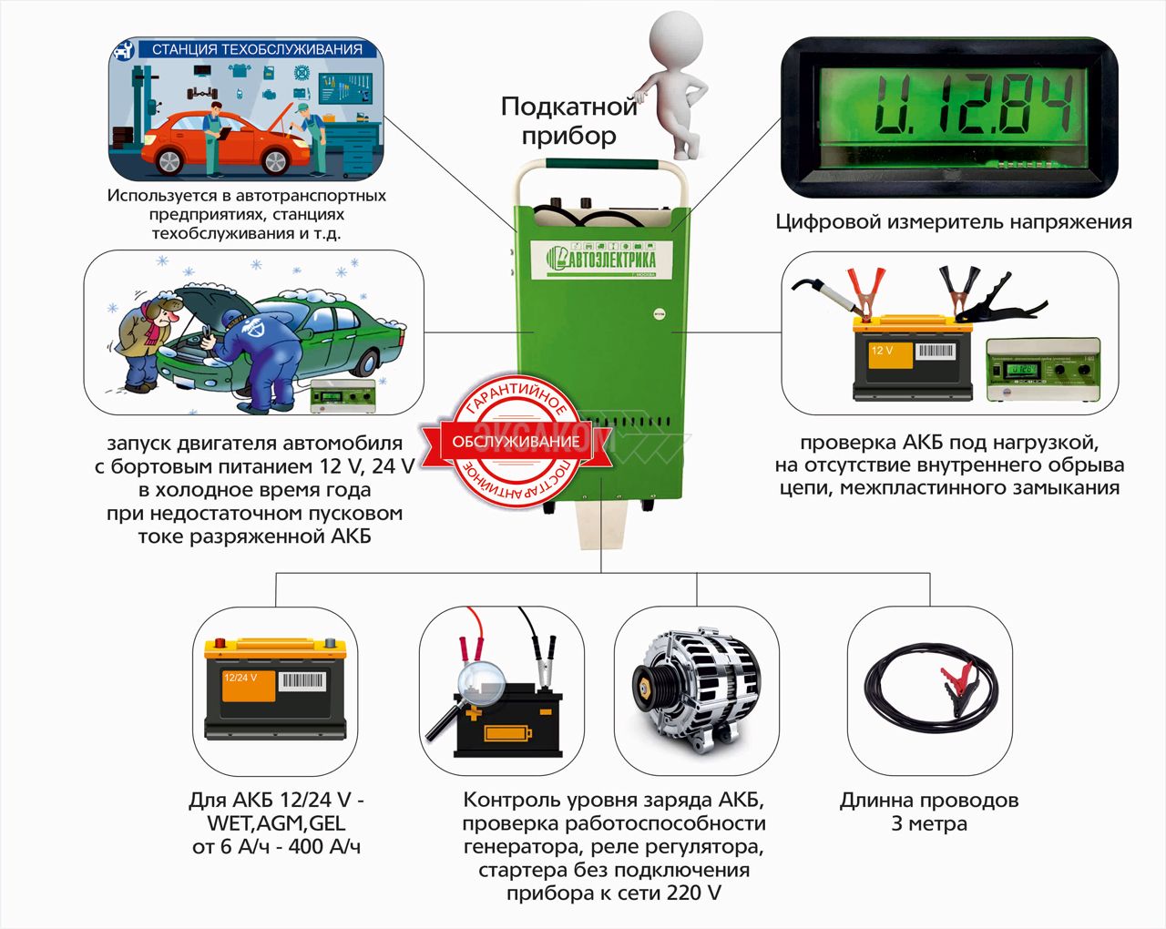 - зарядка аккумуляторных батарей с номинальным напряжением 12 V , 24 V;