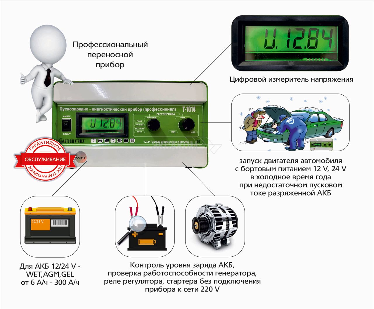 Пуско-зарядный диагностический прибор Т-1014 (управление током заряда R-Резистор), предназначен для: