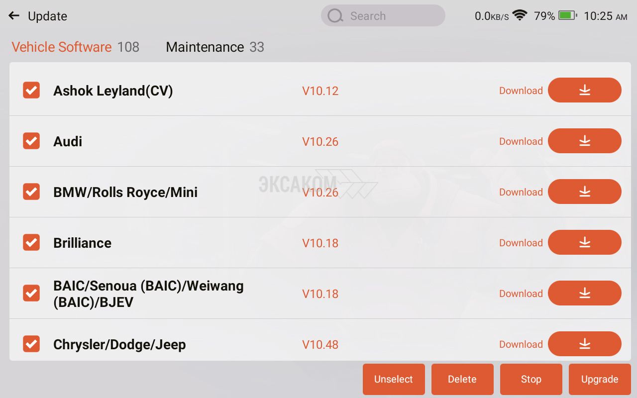 - Чтение/удаление ошибок по всем системам автомобиля