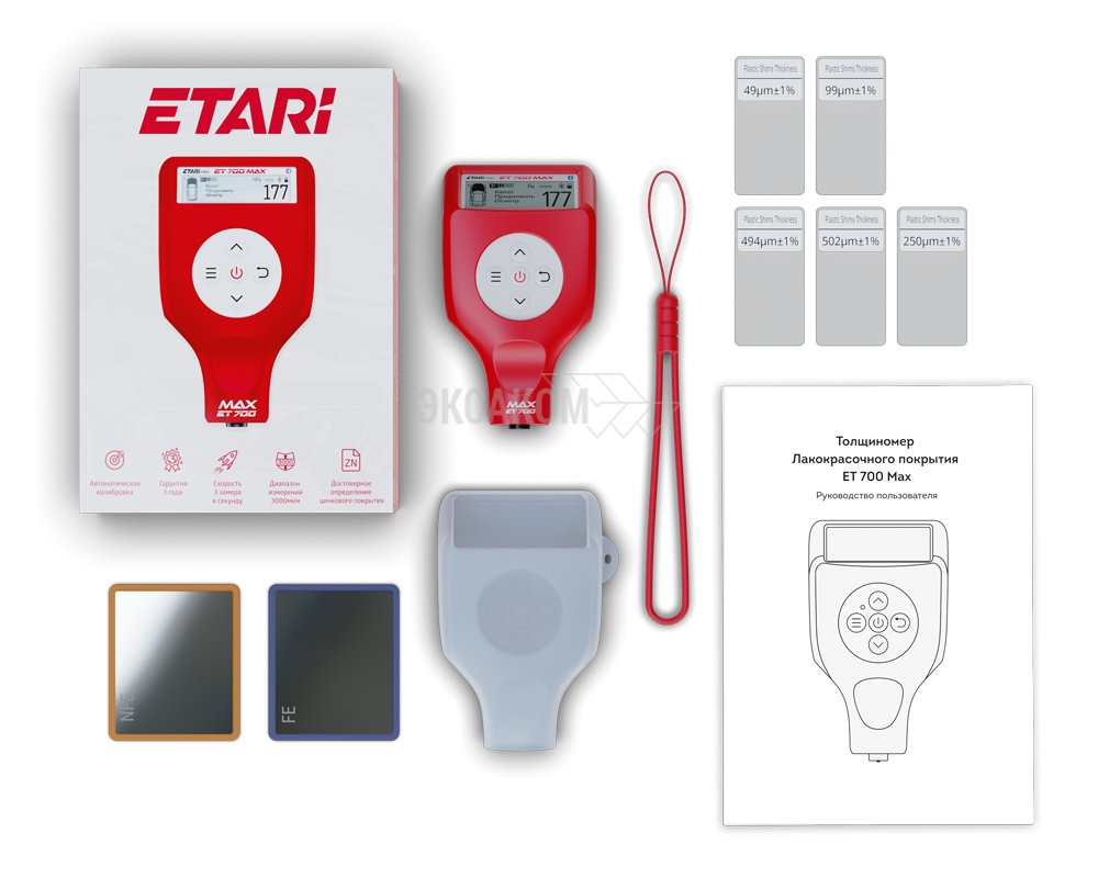 КОМПЛЕКТАЦИЯ:- Толщиномер Etari ET700 Max