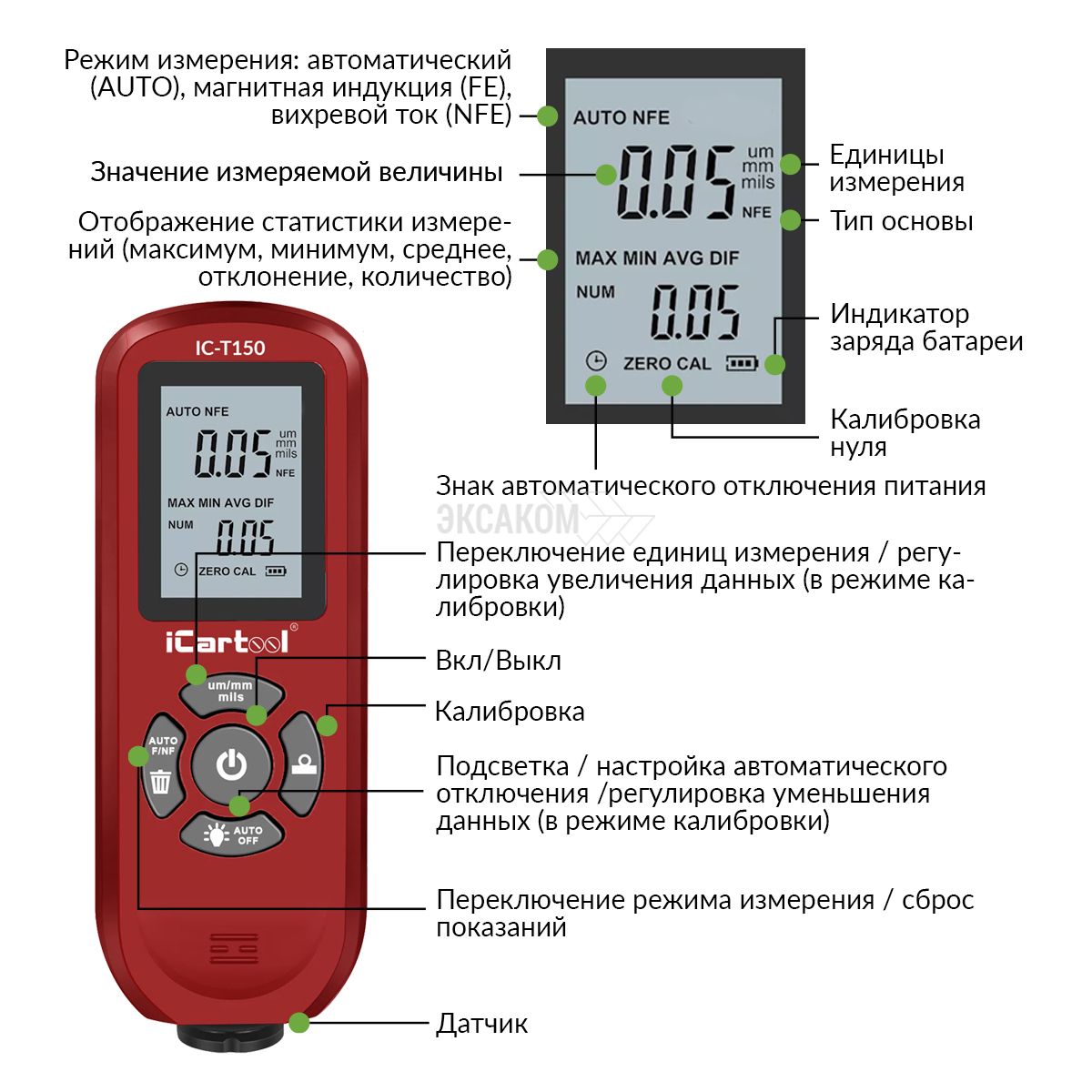Толщиномер лакокрасочных покрытий Fe/NFe iCartool IC-T150