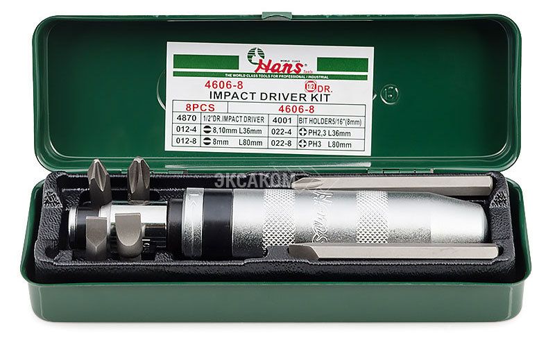 Ударная отвертка с битами 1/2" Hans, 4606-8