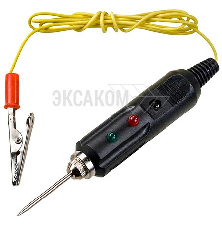 - Тестер выполнен из ударопрочного ABS-пластика, имеет 2 световых индикатора зеленого и красного цветов, металлический щуп.