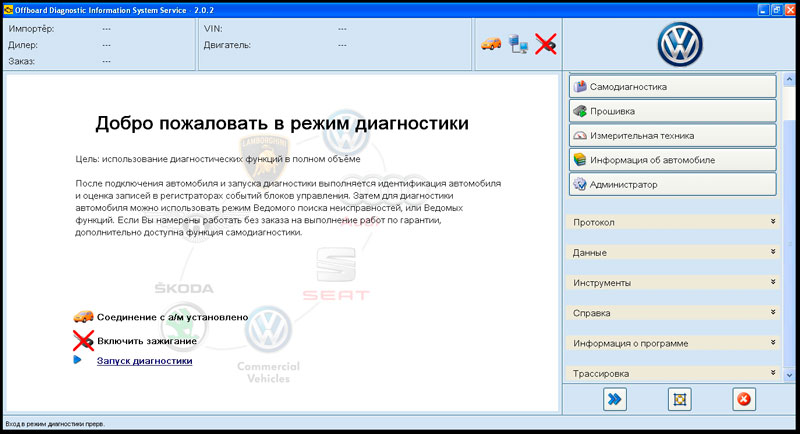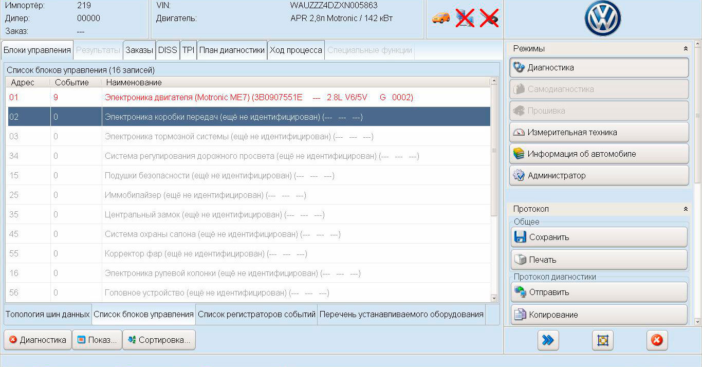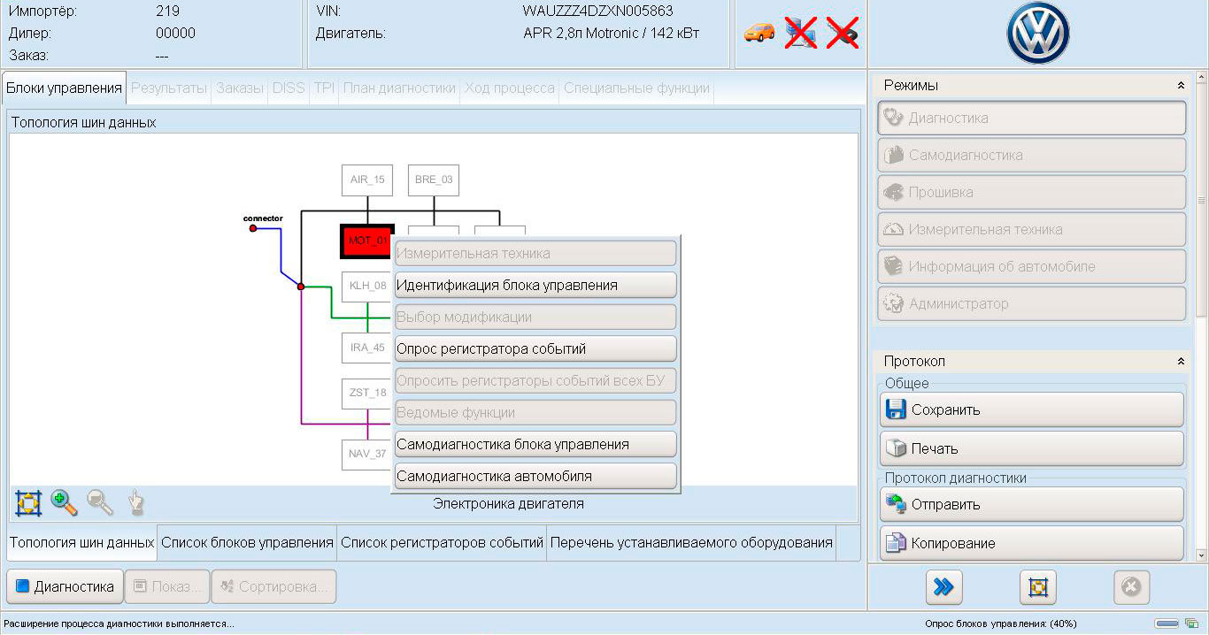 Автосканер VAS 5054A. Контроль соединений с ЭБУ