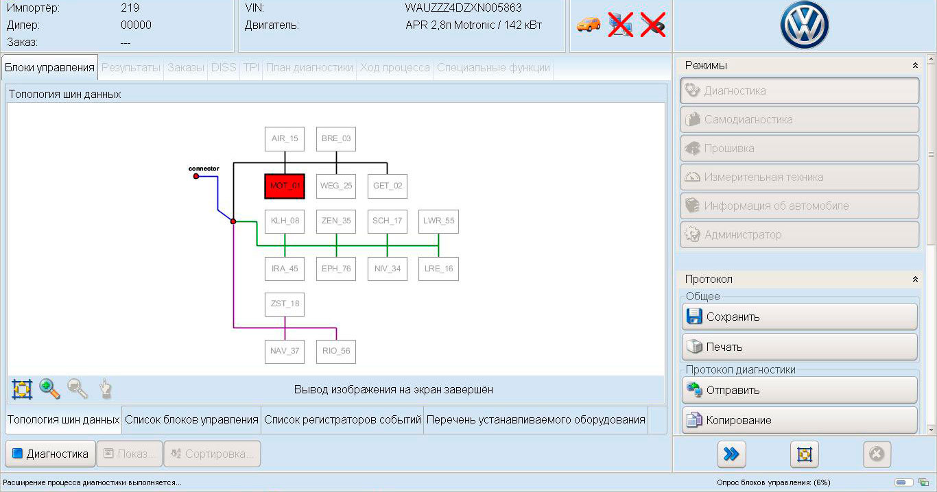 Автосканер VAS 5054A. Контроль процесса диагностики.