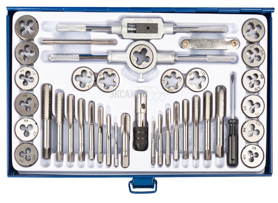 M3x0.5, M3x0.6, M4x0.7, M4x0.75, M5x0.8, M5x0.9, M6x0.75, M6x1, M7x0.75, M7x1, M8x1, M8x1.25, M10x1.25, M10x1.5, M12x1.5, M12x1.75 - Плашки: