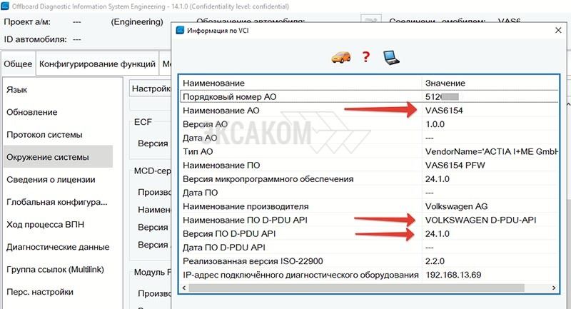 Является полноценным аналогом (не обычным passthru интерфейсом) оригинального сканера VAS6154. Работает с новыми версиями ODIS (Service и Engeneering) через драйвер оригинального Volkswagen D-PDU API: