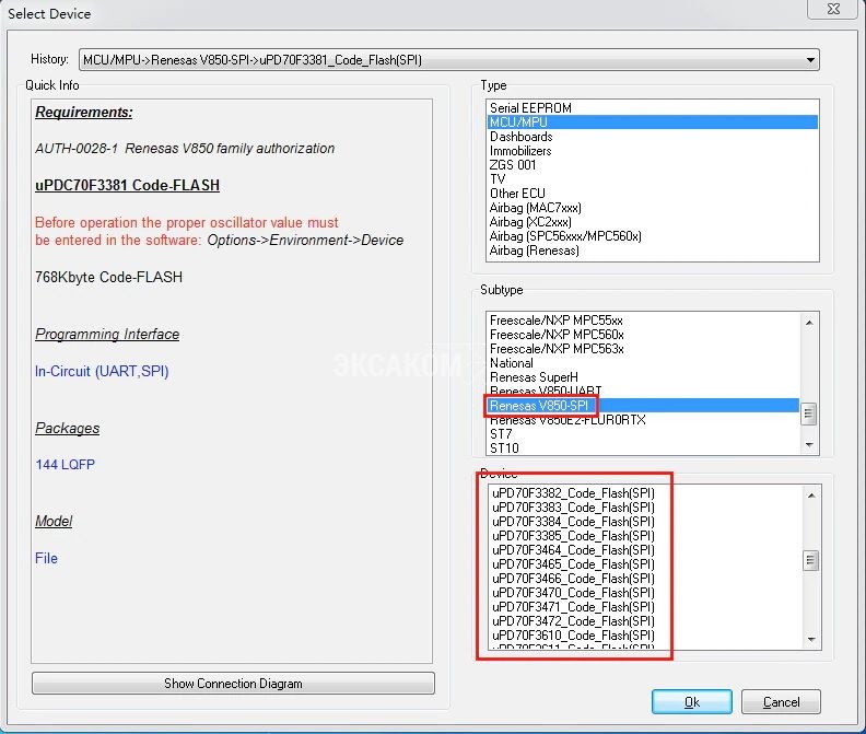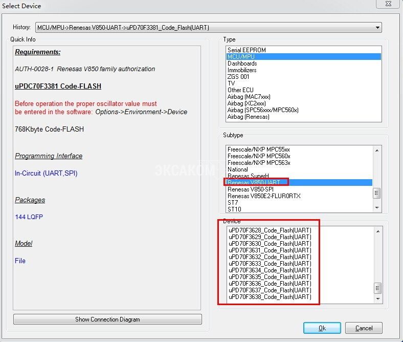 • AUTH -0020 ARM (Micronas, ...) family authorization ( позволяет прочитать / записать встроенную память и внешнюю последовательный EEPROM)