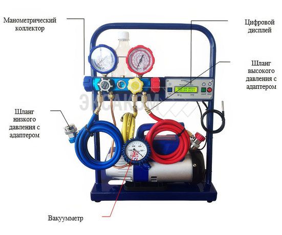 - соединительные шланги (высокого давления, низкого давления и для подключения к баллону с хладагентом);